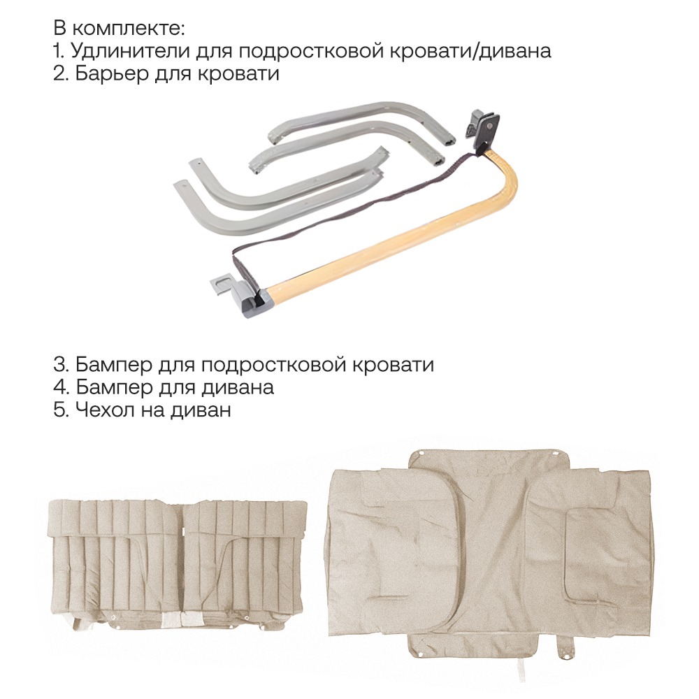 • Функция: соединяет детскую кроватку с кроватью родителей для комфортного совместного сна